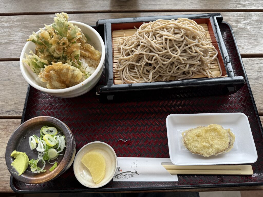 香り高い江丹別そばは、キリッとしたつゆの出汁がしっかりと効いていて本当に美味しかったです。一緒に頼んだ天ぷらもサクサクと軽く、サウナに入る前の食事としてはちょうどいいボリュームでした。
