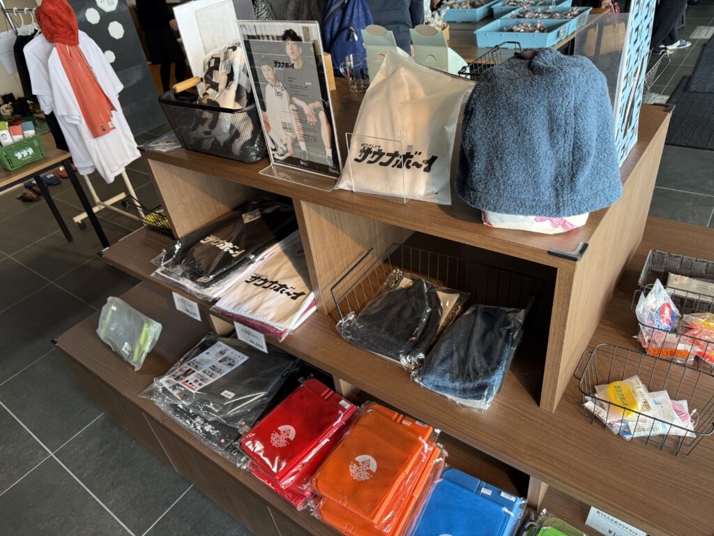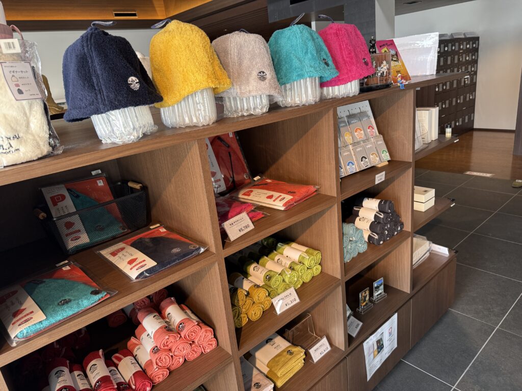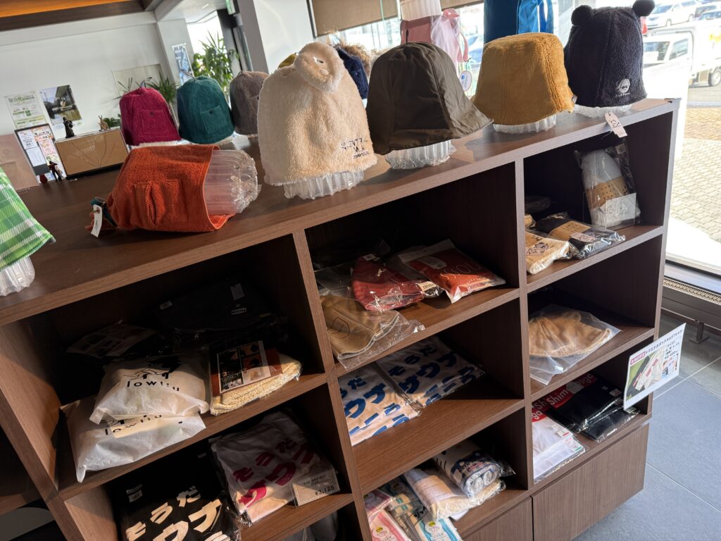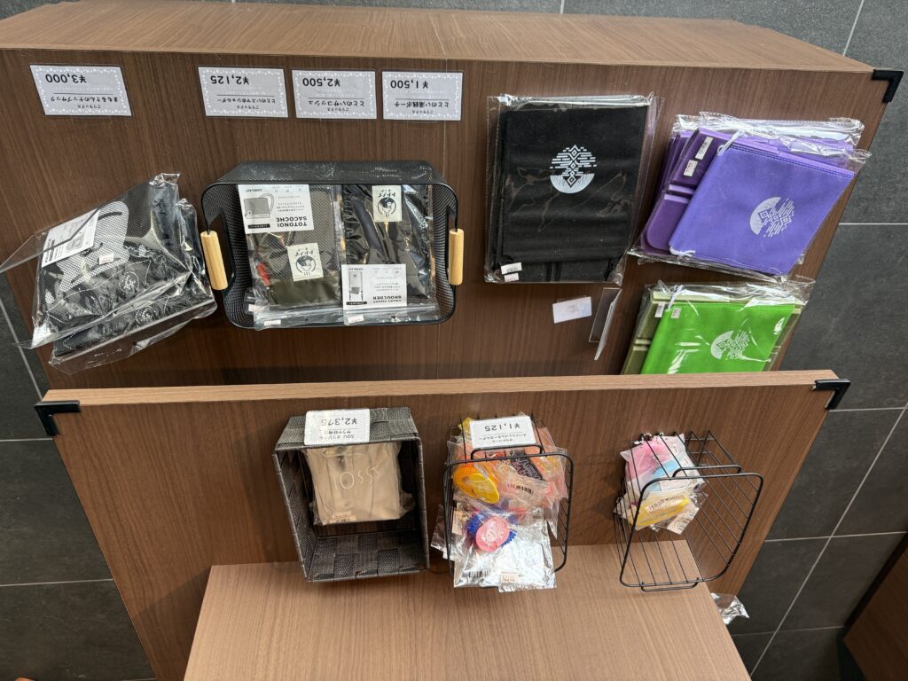 館内に入ってまず驚いたのが、サウナグッズの充実ぶりです。「サウナボーイ」のアパレルや「MOKUタオル」、そして「ごリラックス」のかわいらしいアイテムがズラリと並んでいました。