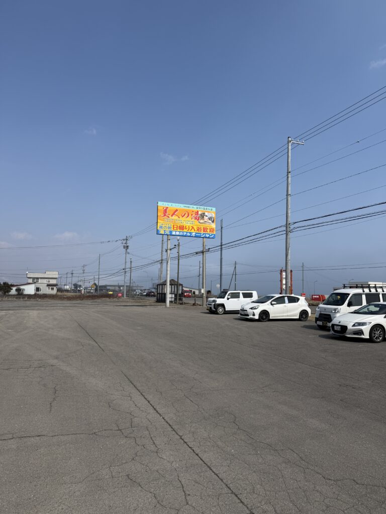 お腹も心も満たされた後は、高速道路で一路、白老へ。今回は久しぶりに「温泉ホテル オーシャン」へ足を運びました。こちらも駐車場に十分なゆとりがあり、スムーズに車を停めることができました。